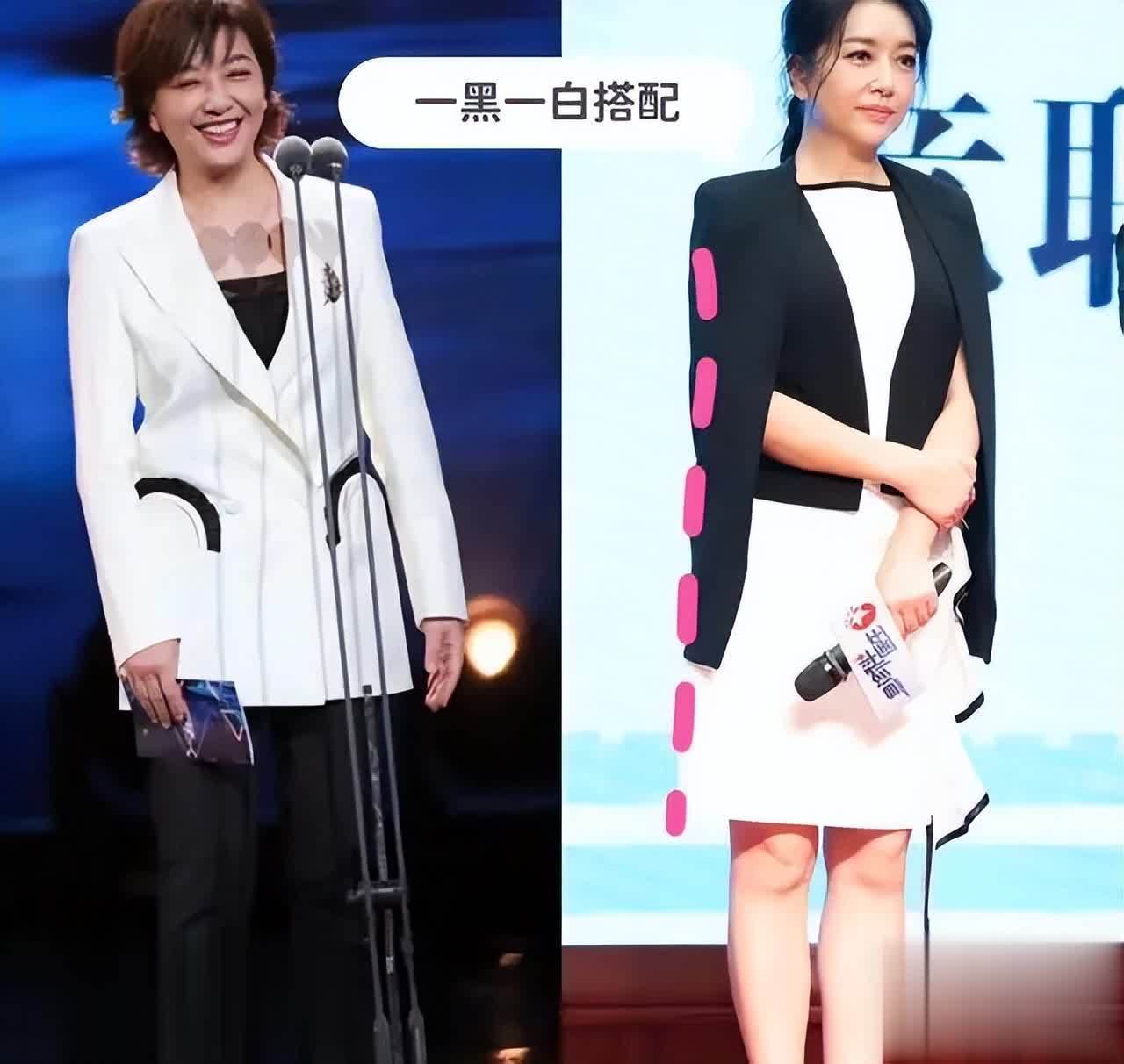 黑白配色永远是职场女性的首选,它不仅适用于各种场合,还格外显气质。比如白色西装搭配黑色长裤能优化身材比例,黑色西装配白色长裙则让整体造型更有层次感。这种经典配色的魅力在于,穿搭既不会过于张扬,也不会太过沉闷。